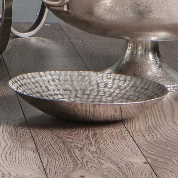 With a chic and sophisticated look, this Marden hammer round bowl is perfect for adding a decorative touch to your home. Made from metal with a contemporary hammered effect and a stunning silver finish that will complement a range of décor styles.