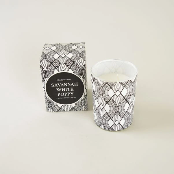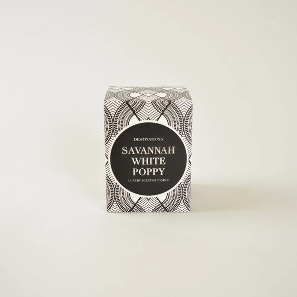 Set within a 220g glass pot, this stunning candle has a 26 hour burn time, adding a fragrant scent to any room of the house. Packaged in a beautiful African inspired colour gift box with wax pot to match the theme, this piece has a Savannah white poppy scent.