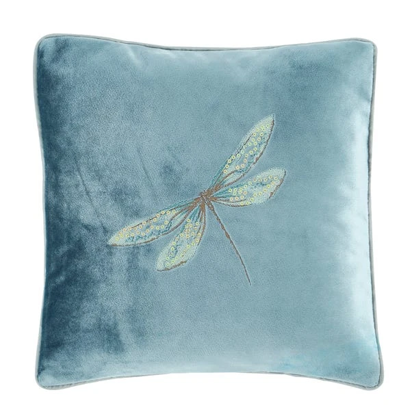 Adding a touch of nature to your bedding, with this opulent velvet dragonflies cushion. With delicate sequin embroidery, this cushion is elegant and beuatiful. This cushion is machine washable and coordinating curtains and bedding sets are also available.