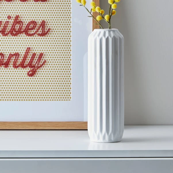 With a satin finish, this stunning vase with a modern shape will make a striking addition to any home. It’s natural, modern colourway will complement an array of home decors and this wipe-clean vase will be perfect for your home.