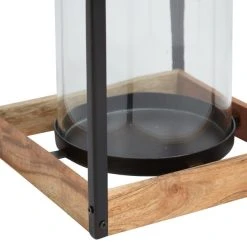 Create a gorgeous display of light and shadows with this beautiful Fulton lantern. This modern piece features a dark wood and black metal frame, with a glass candle holder and metal handle that is securely attached for easy transportation around your home. Complete this lantern with a LED candle pillar, perfect for creating a warm yellow flickering glow in your room.