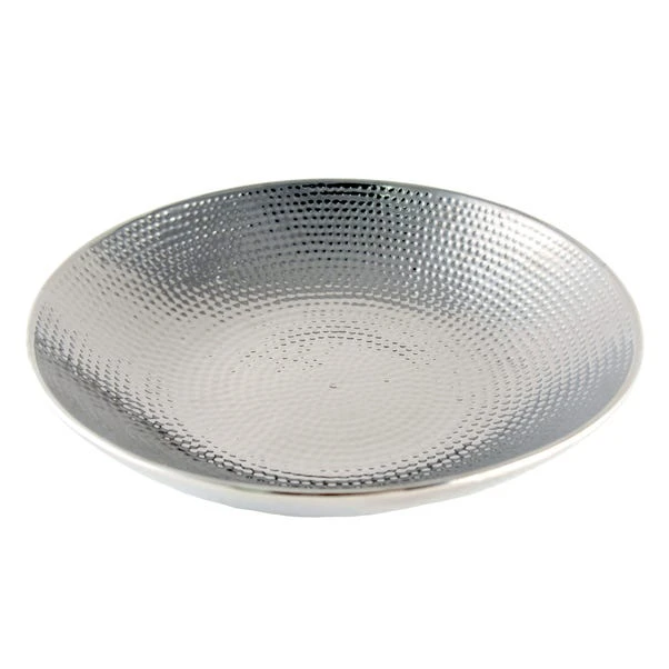 Complete with a hammered effect painted finish in a silver colourway, our ceramic plate will make a bold visual statement in any interior.