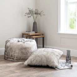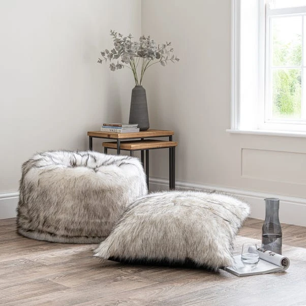 This indulgently soft faux fur floor cushion is inspired by the natural beauty of Husky fur. The black tips of the otherwise ivory coloured fur bring some wintery charm into your home. Generously sized and finished with a non-slip base made from a durable non-woven, the floor cushion is generously filled with polybeads providing comfortable seating and support at the same time. Coordinating bean lounger available.