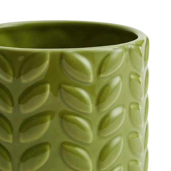 This plant pot comes in a beautiful green colourway and boasts an elegant leaf pattern. This piece is easy to wipe clean and will make the perfect addition to any room.