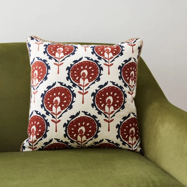 Printed with a contemporary luxe geo design with a jute trim edge, this cushion is perfect for bringing in a touch of colour and pattern to your home. Crafted from 100% cotton and filled with a plump inner of soft durable polyester fibres, its perfect to bring comfort and style to your home.