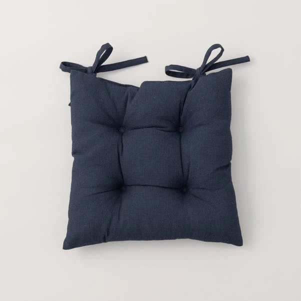 This Mini Waffle seat pad, with its appealing texture, will make a stylish addition to your kitchen, dining or patio chairs. Made and filled with recycled fibres it provides soft, quilted comfort and secures to the back of the chair with two practical ties.