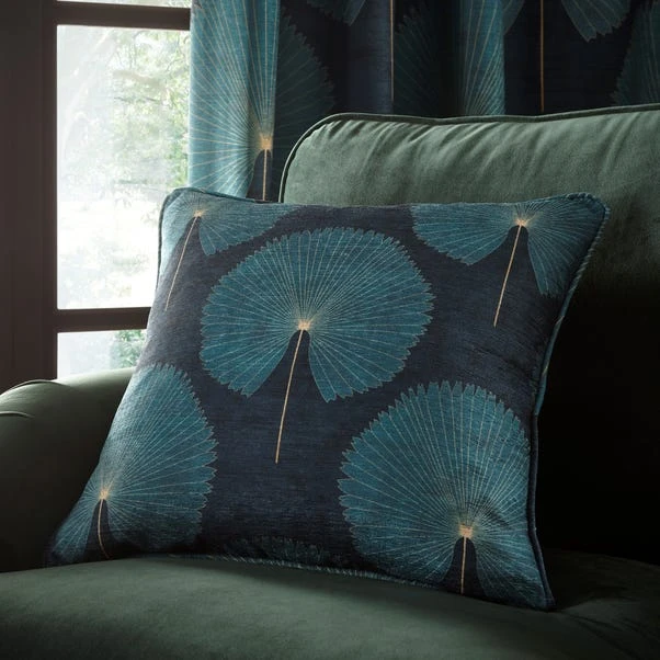 With a rich bottle green colourway, this cushion features a geometric oriental fan design which will add an elegant touch into your home. This cushion comes complete with an flat filling for your comfort and has been finished with a piped edge. Matching curtains available in range of sizes to create a coordinated look.