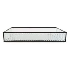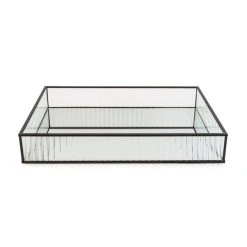 Perfect for adding a touch of stylish decor to any home, this stunning glass tray would make a gorgeous decorative storage solution for your room or an elegant gift for a loved one. Complete with transparent ribbed glass and a black coloured metal outline frame.
