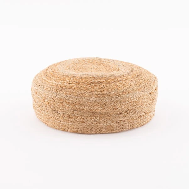 This practical round floor cushion is created from plaited jute fibre, a fast-growing natural fibre. The jute is undyed and as a result the colour of each piece will vary, making each product unique. The base is made from a sturdy undyed 100% cotton canvas. Coordinate with a other beautifully crafted Jute items for a relaxed look.