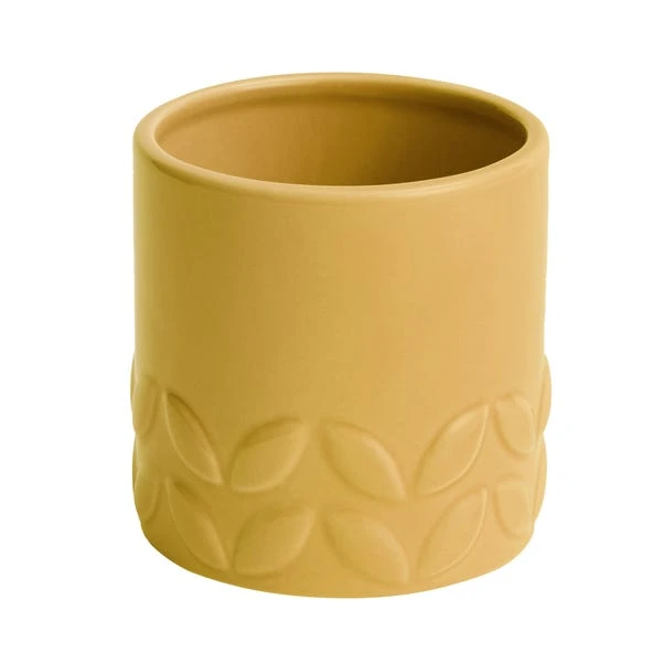 This plant pot comes in a beautiful ochre colourway and boasts an elegant leaf pattern. This piece is easy to wipe clean and will make the perfect addition to any room.