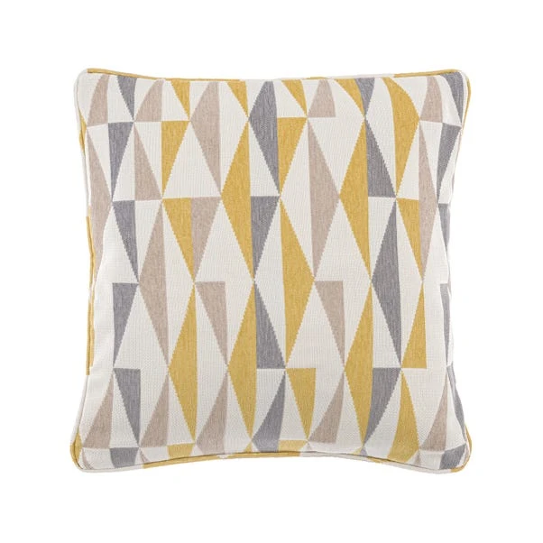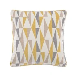 Sporting a modern geometric triangle design and completed in an on-trend grey and ochre colourway, this stylish cushion is ideal for bringing a contemporary edge to your home. This cushion is crafted from smooth and soft chenille jacquard fabric and features contrasting piped edging for a sophisticated finish. Great for bringing colour and texture to your décor, this cushion is filled with plump polyester and provides maximum comfort when relaxing in your home. Coordinating curtains are available to purchase separately.