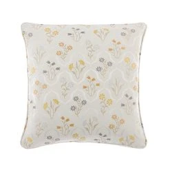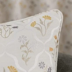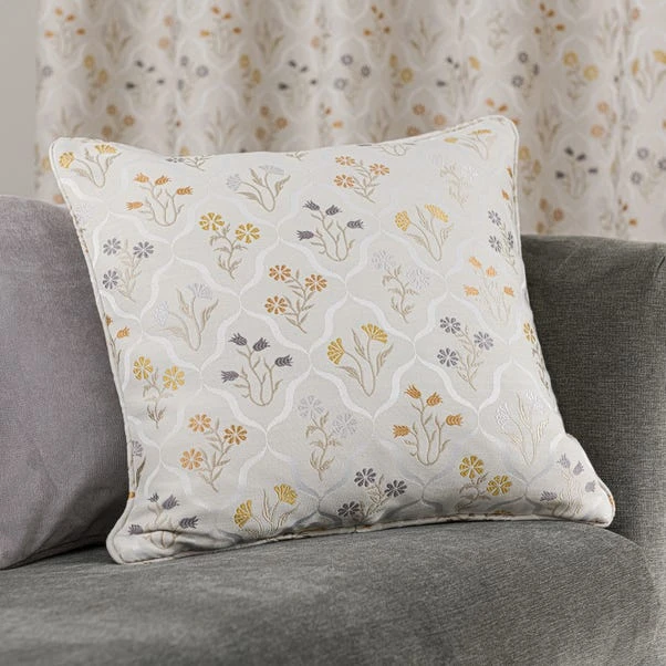Fashioned from luxurious jacquard fabric and decorated with a delicate floral pattern, this elegant cushion is completed in warm ochre and natural colourway and is ideal for bringing a sophisticated edge to your décor. This cushion is completed with piped edging for an opulent appearance and is crafted from durable materials for improved longevity. Generously filled with plump polyester fibre, this cushion ensures maximum comfort and support. Coordinating curtains are also available.