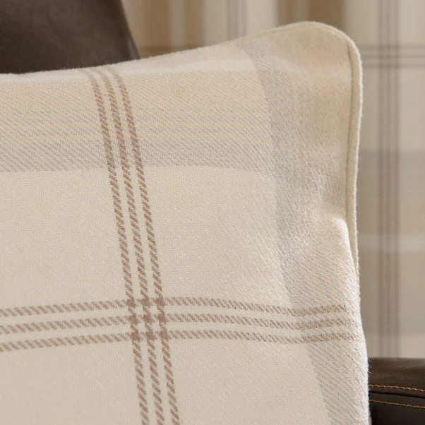 Ideal to coordinate with our Highland Check eyelet curtains, this cushion from our Luxury collection features a timeless tartan check design and is completed in a warm natural colourway. This cushion is fashioned from a brushed yarn fabric for a wonderfully tactile finish and is completed with piped edging for a sophisticated look. Generously filled with plump and durable feathers for lasting fullness, this cushion ensures maximum comfort and support while relaxing in your home.