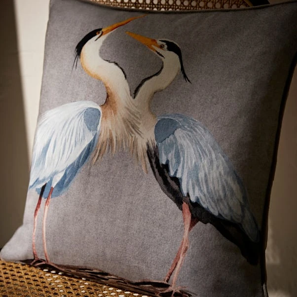 Featuring a beautiful velvet touch, this cushion has a digitally printed grey heron design inspired by looking into the grasses of a riverbank. The cushion cover has been crafted from a 100% recycled polyester fabric. An envelope back keeps the recycled polyester hollowfibre filling secure.
