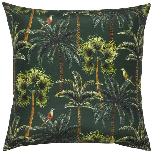 Designed, printed and made in the UK and of water resistant polyester, this outdoor cushion is designed to withstand showers and spills, ideal for the messiest of guests. Featuring a repeated tropical inspired palm tree design, this funky cushion is complete with a coordinating reverse and hidden zip closure.