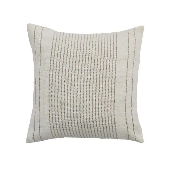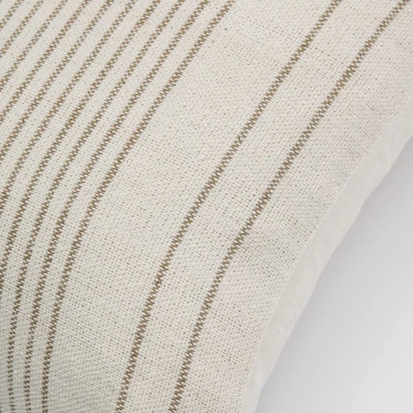 Featuring a clean pinstripe pattern in a subtle taupe hue, this cushion is made from recycled cotton and filled with a plump feather filling for a decorative and comfortable addition to your modern home décor.