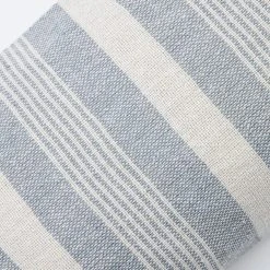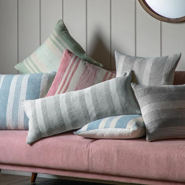 Showcasing a classic stripe pattern made from organic cotton and featured upon these plump and comfy cushions. Filled with a luxurious feather filling for a cosy and support, these cushions are available in a square or oversized rectangle shape and a range of subtle pastel colourways to perfectly bring a chic room together.