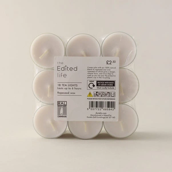 Made from a 100% natural blend of rapeseed wax and rapeseed oil for a cleaner, longer burn, these tealights are perfect for providing a calming glow in any room of the house. The plastic cup is fully recyclable.